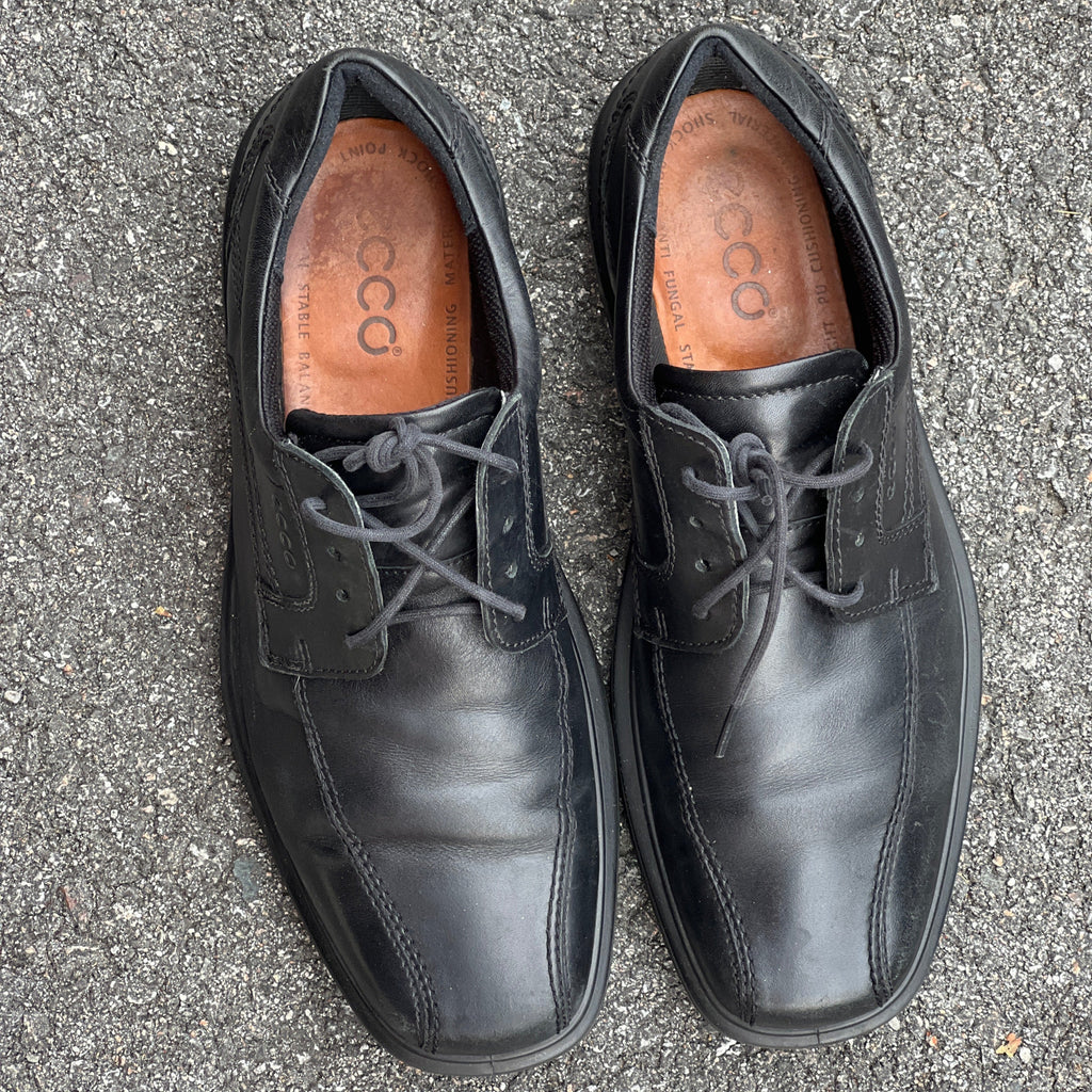 These pre-owned Men’s Ecco dress shoes are in good condition with just a few light scuffs or stains. They come without any rips, tears, or damage—perfect for adding a touch of style to your collection!