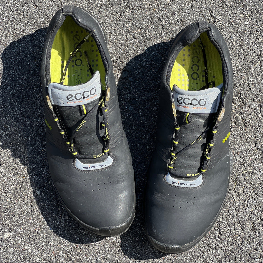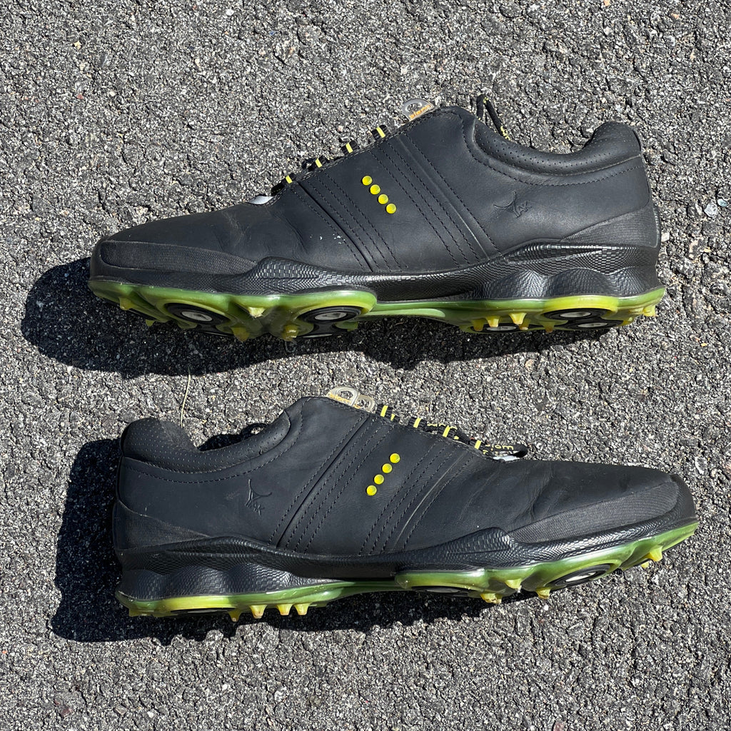 Men’s Ecco Biom Cleated Golf Shoe 45EU • Black/Citron • Hydromax Yak Leather