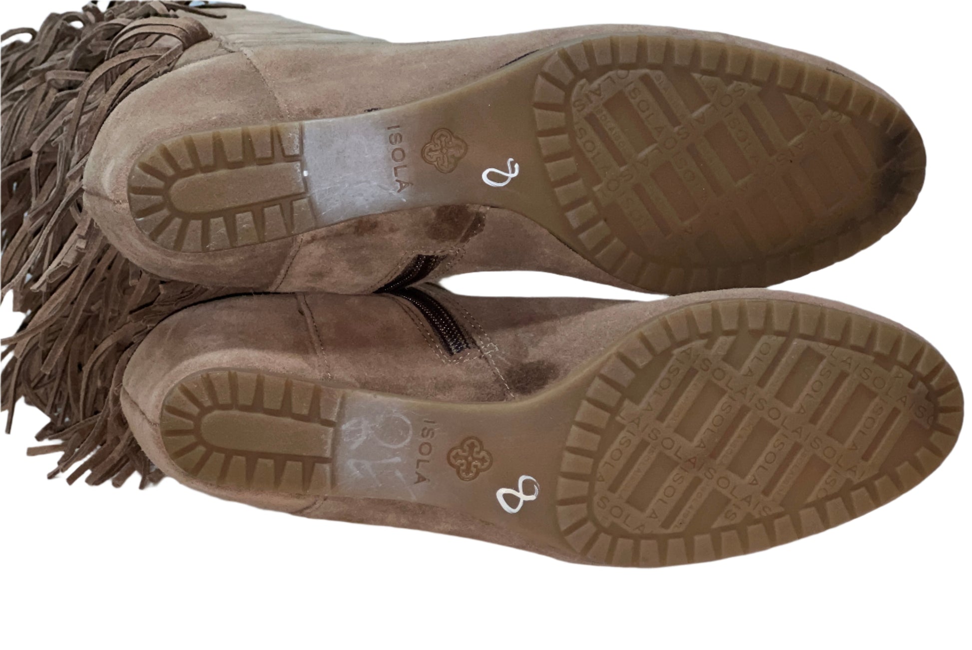 ISOLA Women's Tavora Tall Fringe Boot 8M Havana Brown Suede Leather