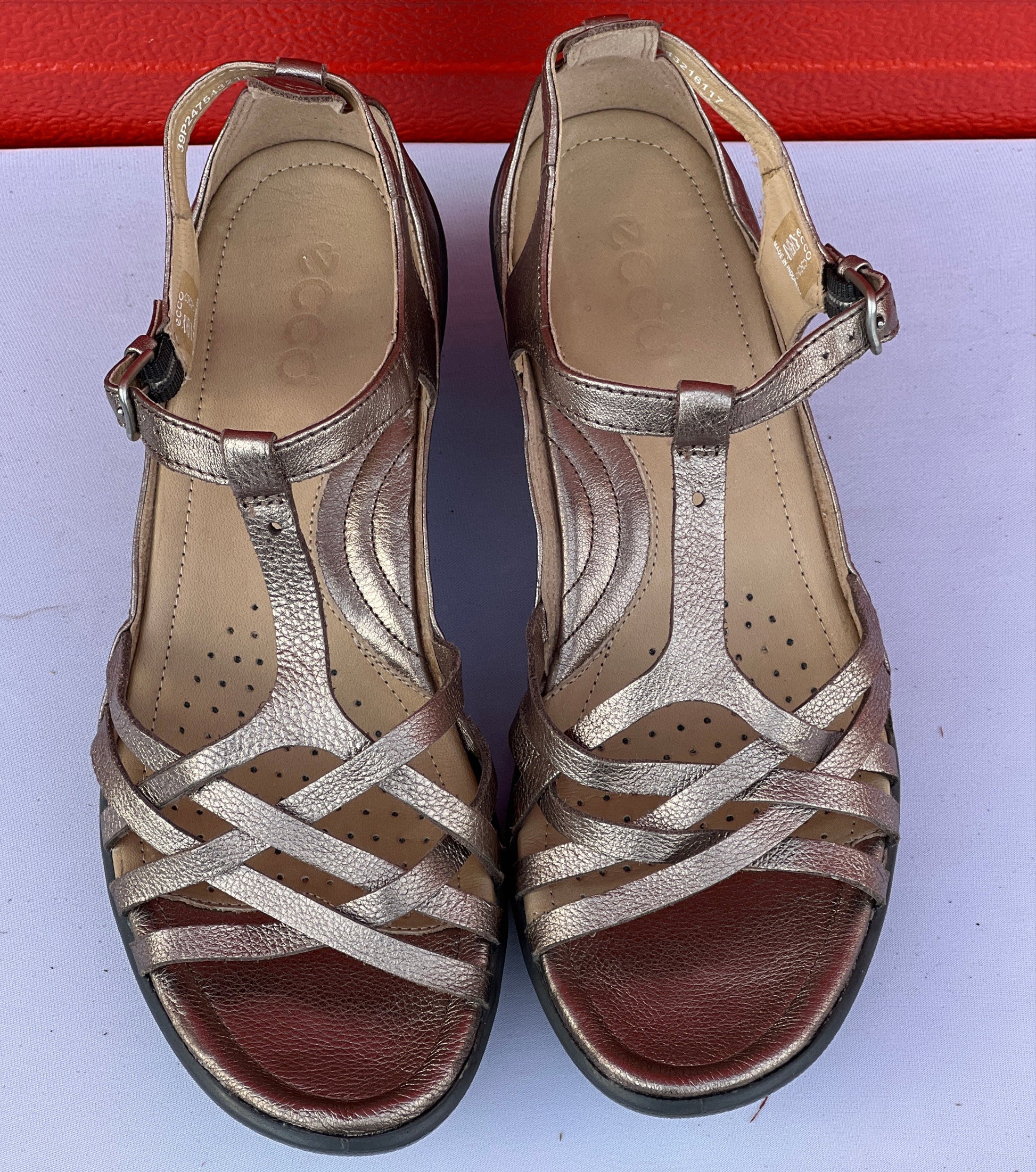 Woman’s Ecco Strappy Wedge Sandal 39M Metallic Leather