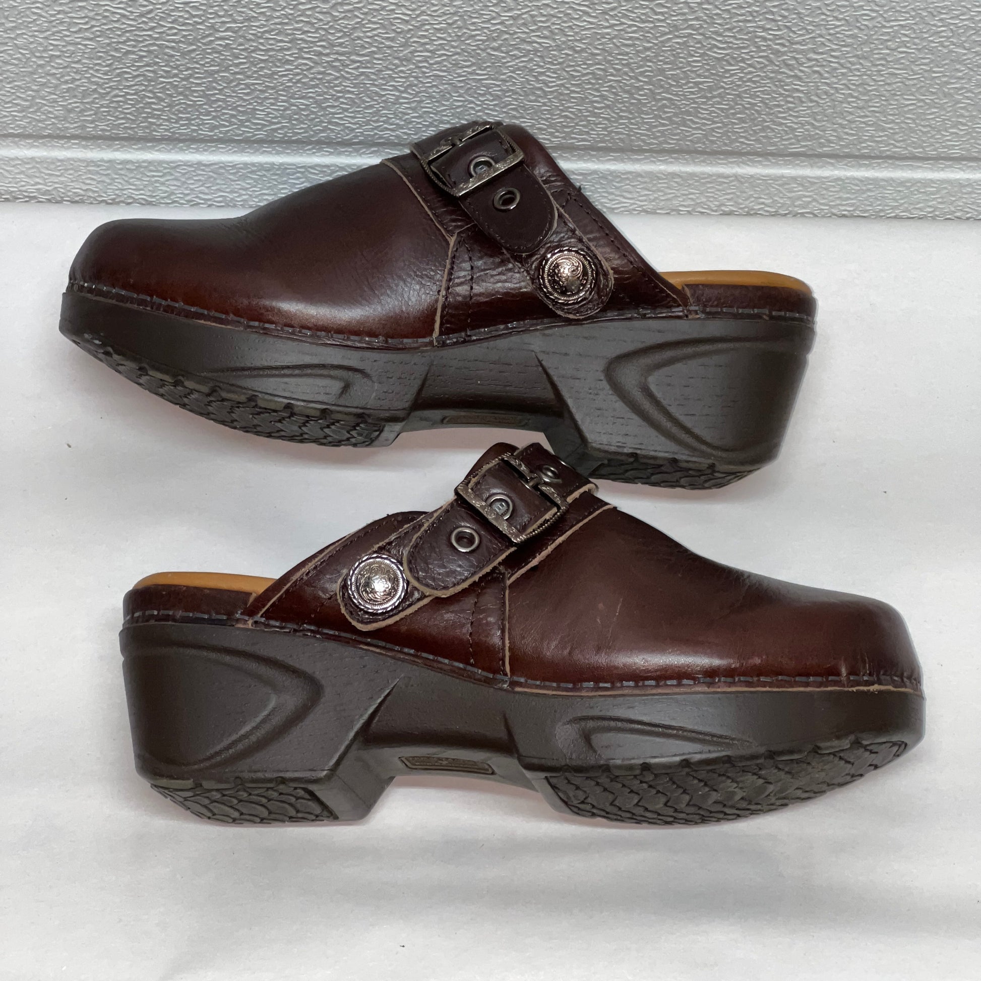 Women’s Nurse Mates Casey Pillow-top Open-back Clog 9M Brown Leather