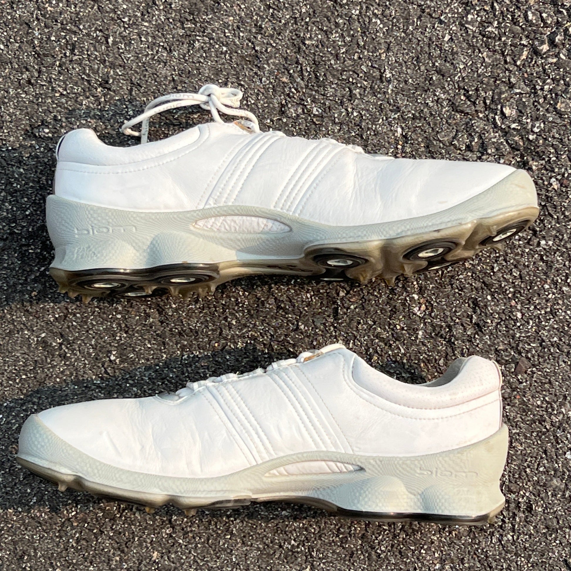 Men’s Ecco Biom Cleated Golf Shoe 46EU• White/Grey • Hydromax Yak Leather