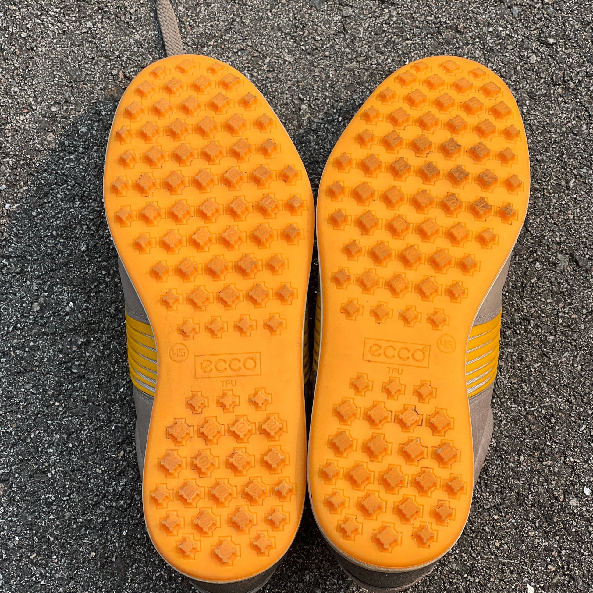 Step up your game with these preowned Men’s Ecco Street Premier Cleat-less Golf Shoes in stylish grey and citron leather, size 45EU. They’re in great shape with just a few light scuffs or stains—no rips, tears, or damage to slow you down on the course!